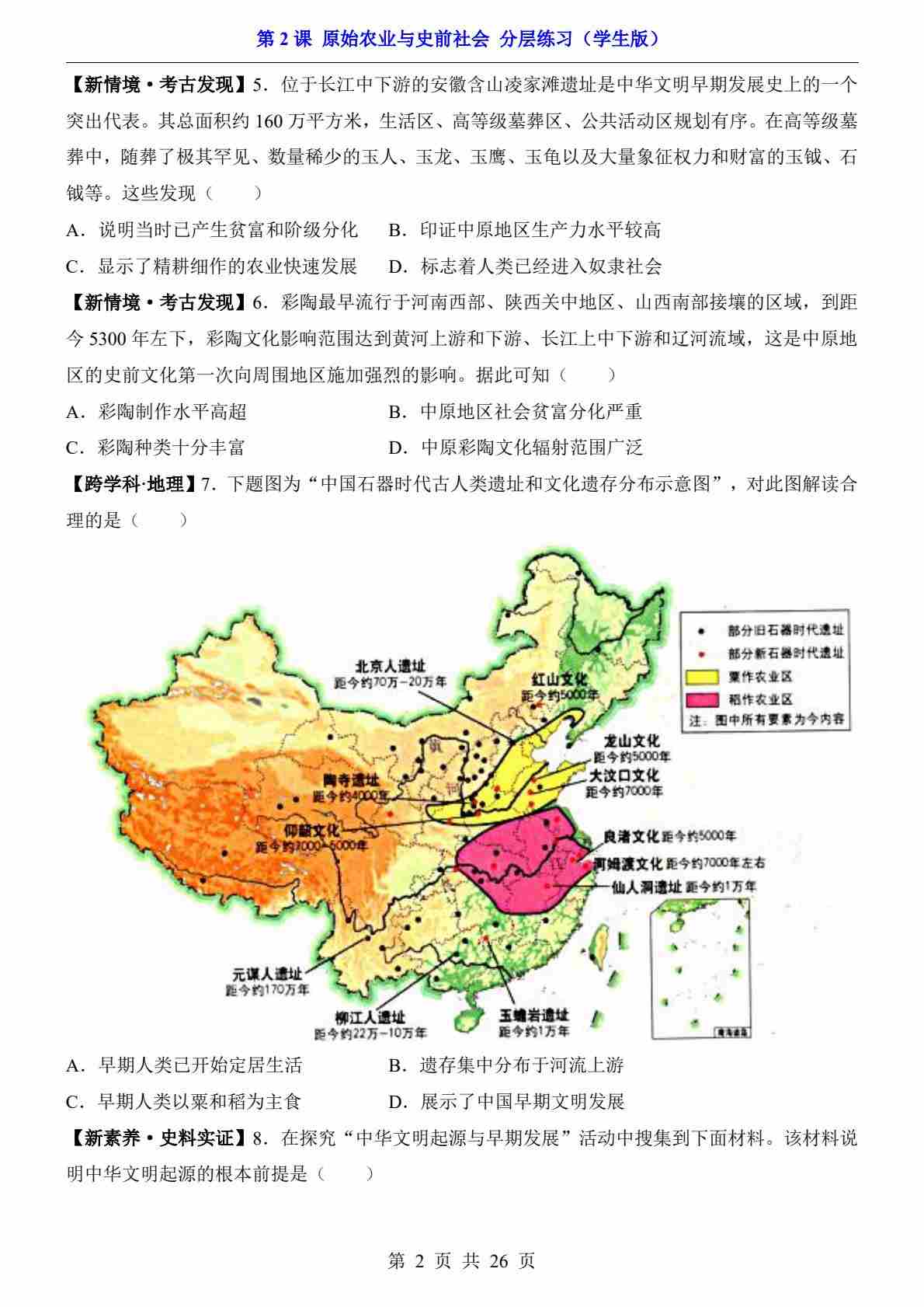 首页 > 全部 > 一课一练 > 第2课 原始农业与史前社会(分层练习)