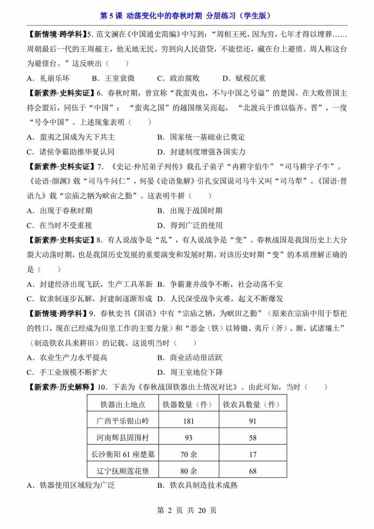 首页 > 全部 > 一课一练 > 第5课 动荡变化中的春秋时期(分层练习)