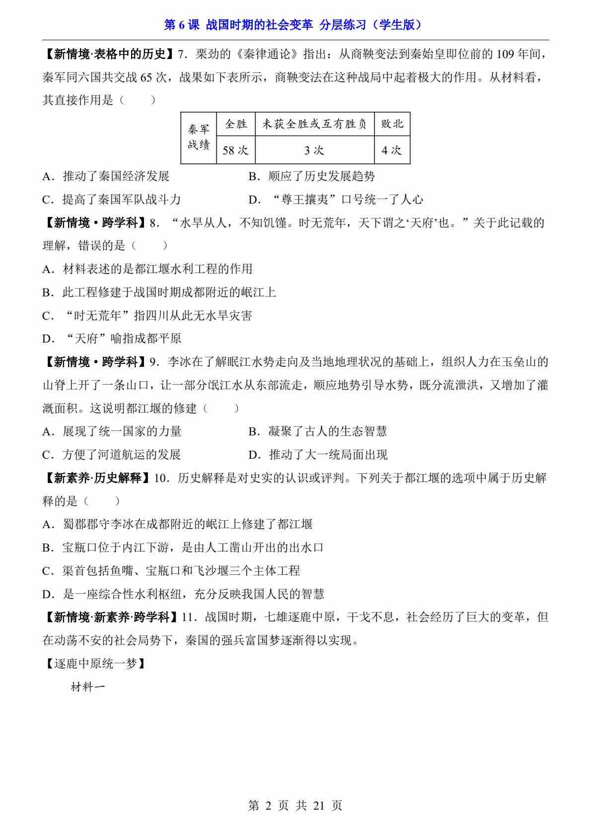 首页 > 全部 > 一课一练 > 第6课 战国时期的社会变革(分层练习)