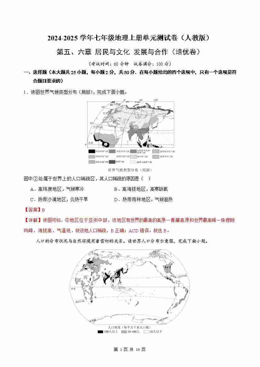 首页 > 全部 > 单元培优卷 > 第5、6章 居民与文化 发展与合作【A卷·培优卷】(解析版)