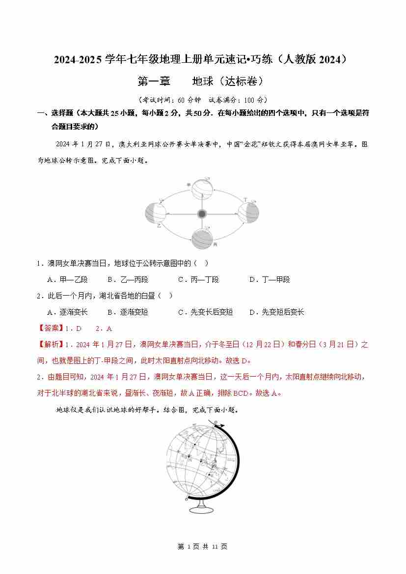 首页 > 全部 > 单元培优卷 > 第1章 地球【A卷·培优卷】(解析版)