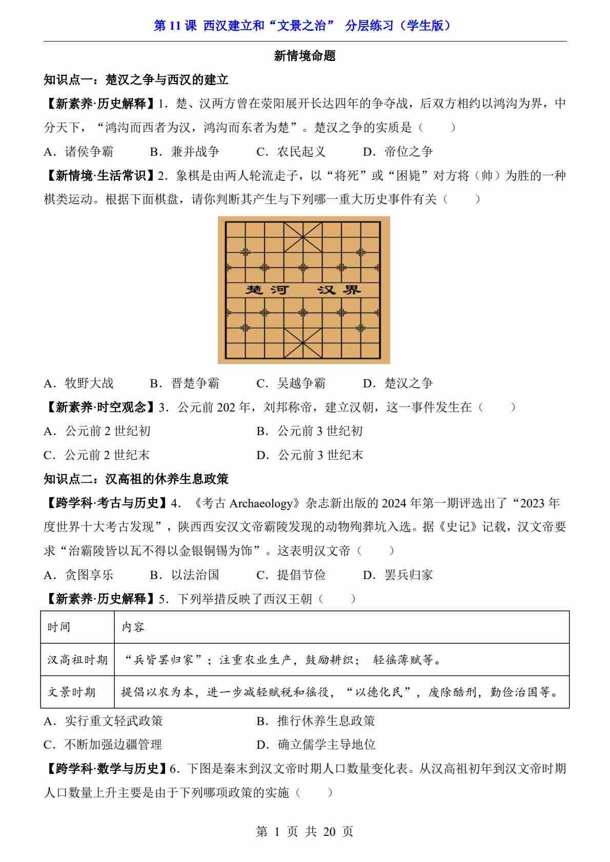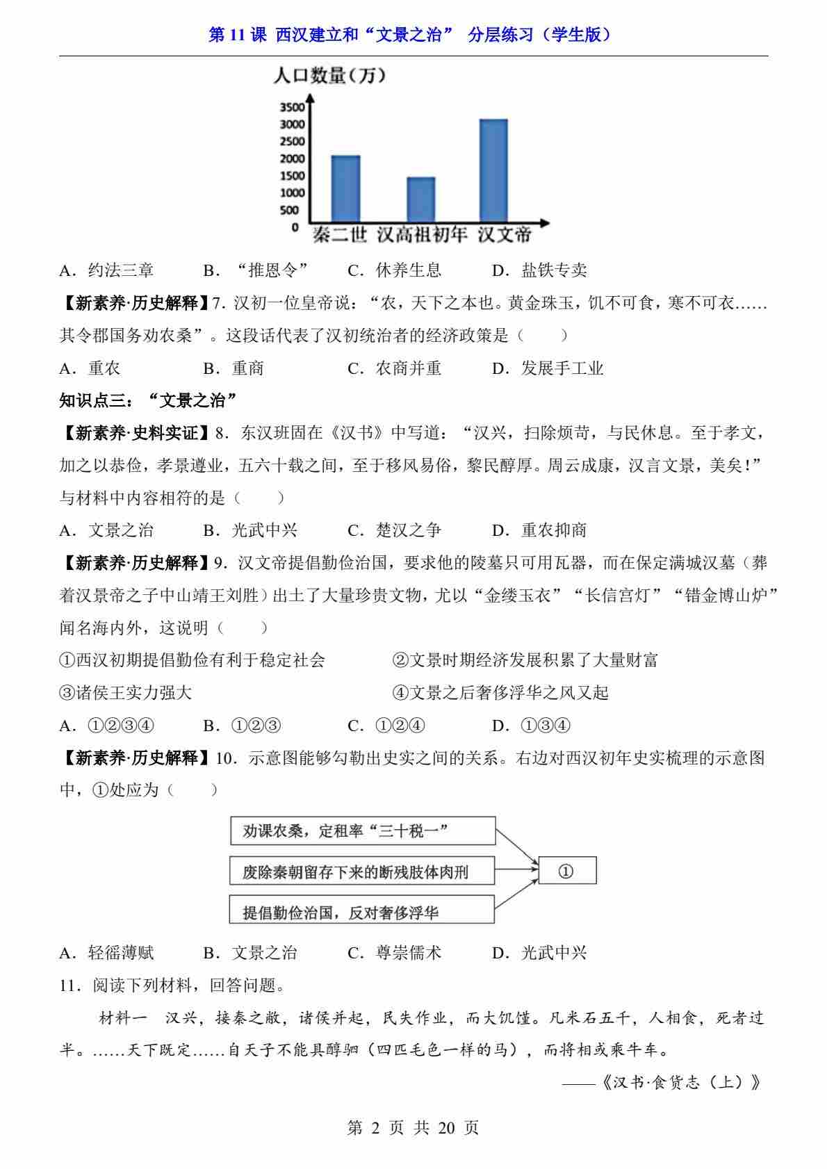首页 > 全部 > 一课一练 > 第11课 西汉建立和“文景之治”(分层练习)