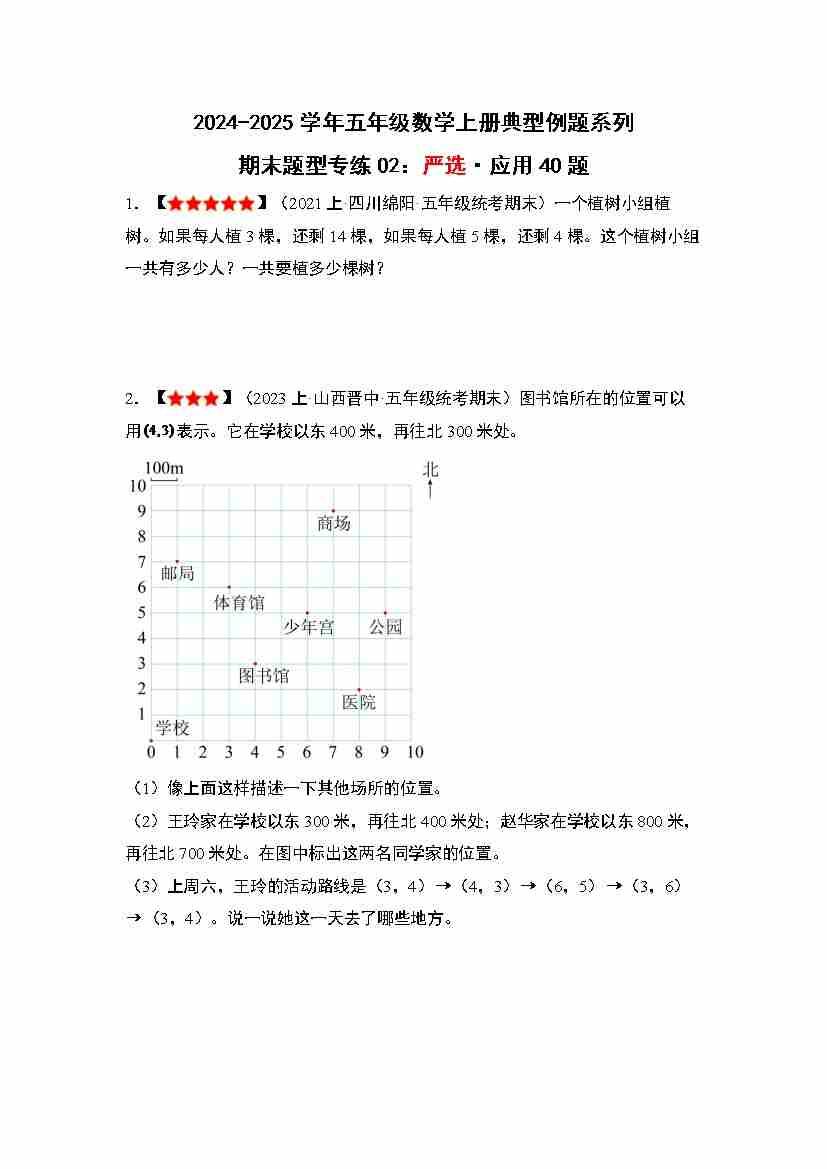 五上人教版数学【期末题型专练02:严选·应用40题】1