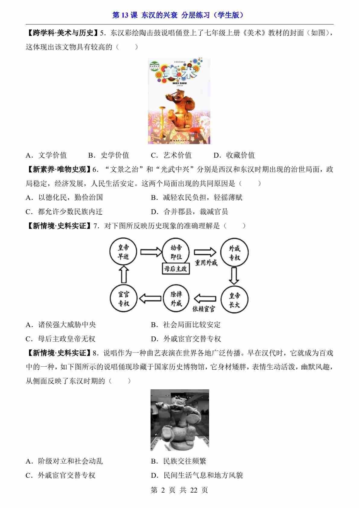 第13课 东汉的兴衰(分层练习)