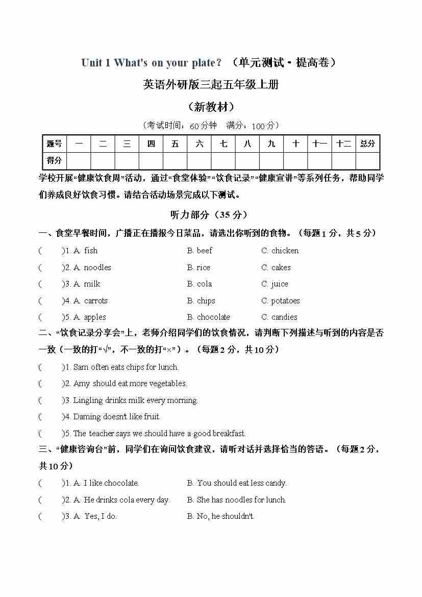 Unit 1 What's on your plate?(单元测试·提高卷)英语外研版三起五年级上册(新教材)13
