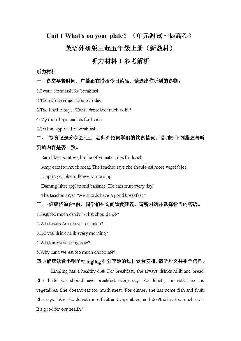 Unit 1 What's on your plate?(参考解析)12
