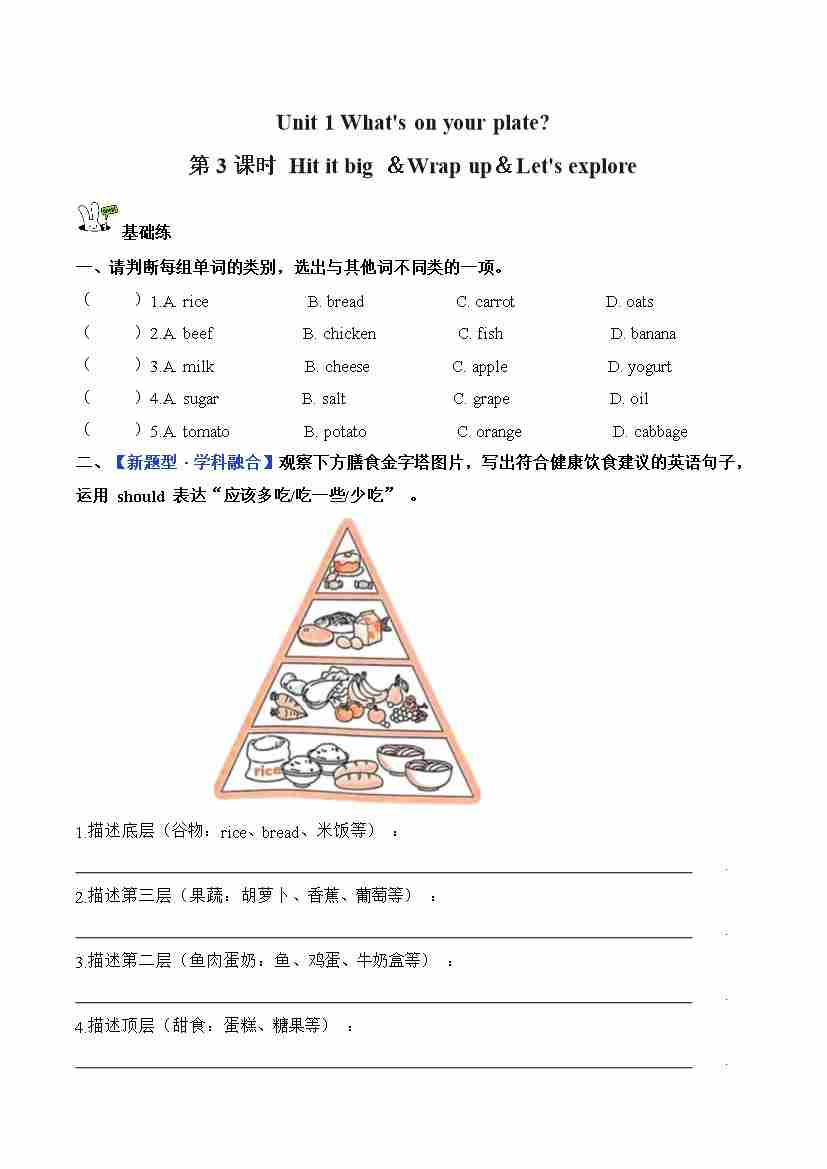 首页 > 全部 > 分层作业 > 五上外研三起Unit 1 第3课时 Hit it big &Wrap up&Let's explore (分层作业)英语外研版三起五年级上册(新教材)3