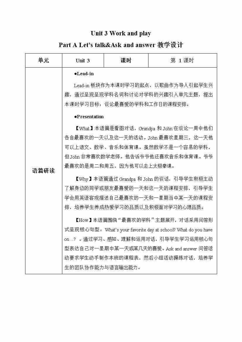 Unit 3 第1课时 Part A Let's talk&Ask and answer (教学设计)(新教材)