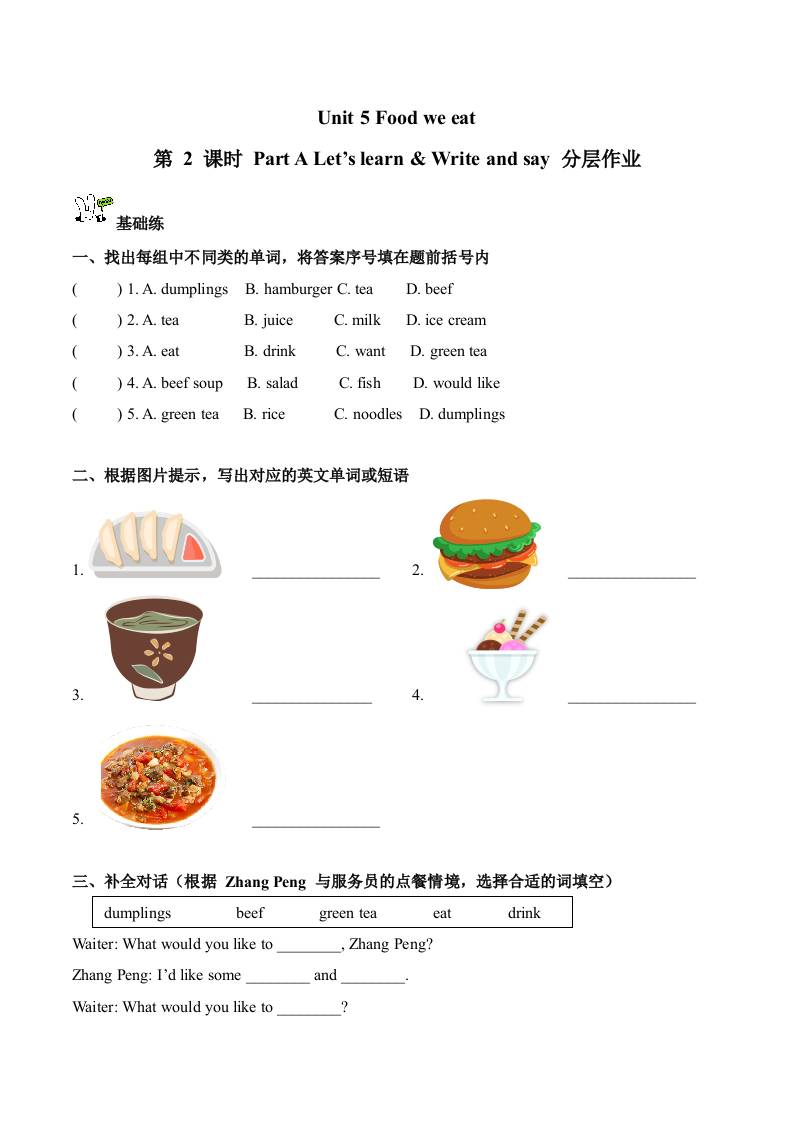 Unit 5 第2课时 Part A Let’s learn&Write and say(分层作业)(新教材)