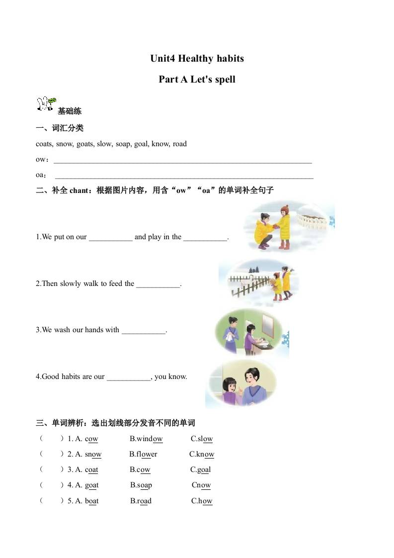 Unit 4 第3课时 Part A Let's spell(分层作业) (新教材)