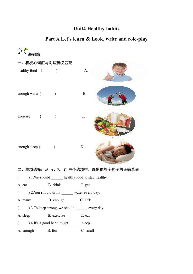 Unit 4 第2课时 Part A Let's learn & Look, write and role-play(分层作业) (新教材)