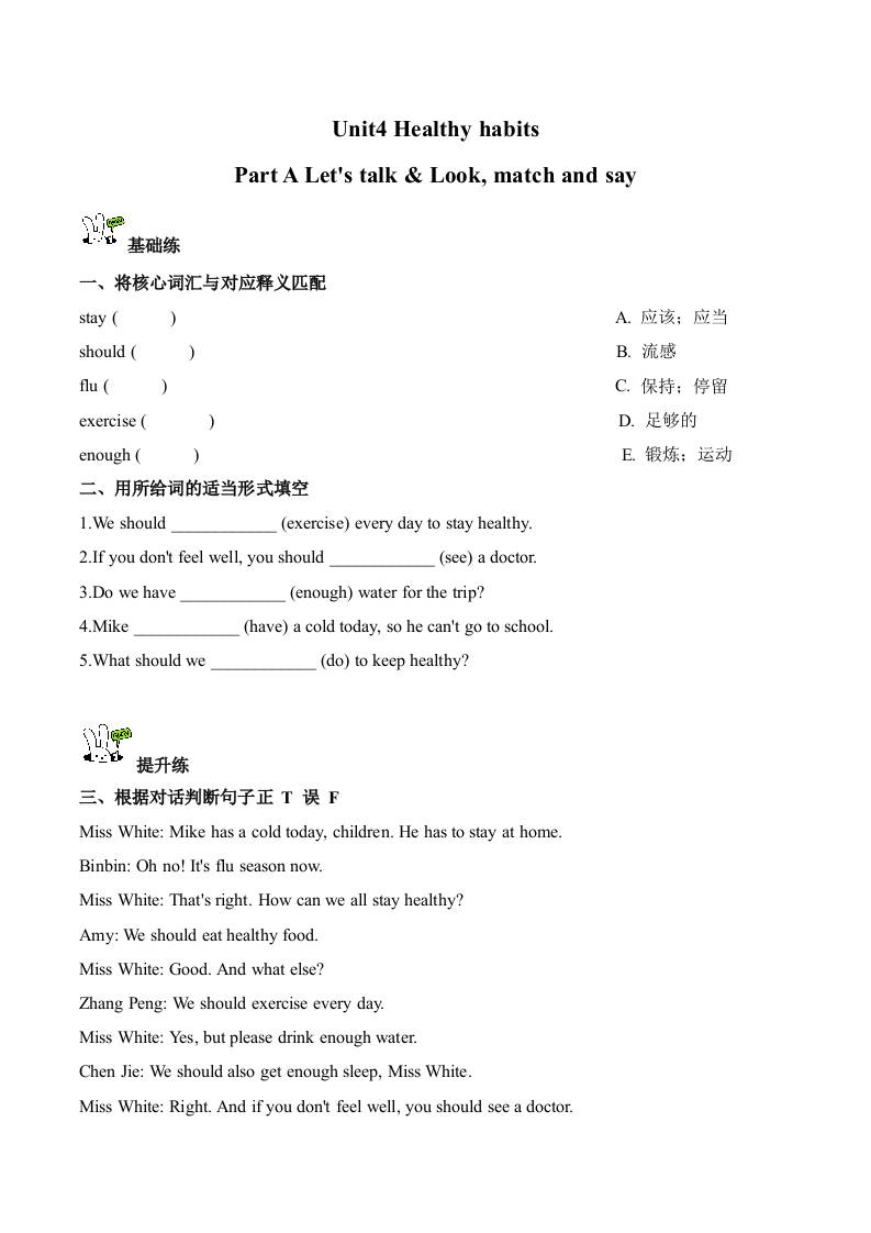 Unit 4 第1课时 Part A Let's talk & Look, match and say (分层作业) (新教材)