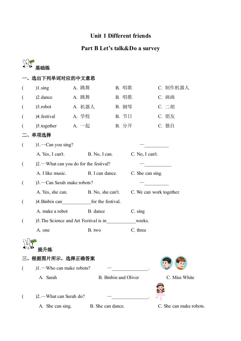 Unit 1 第4课时 Part B Let’s talk&Do a survey(分层作业) (新教材)