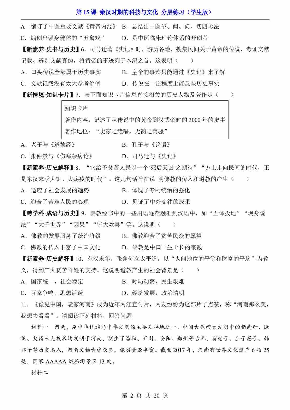 首页 > 全部 > 一课一练 > 第15课 秦汉时期的科技与文化(分层练习)