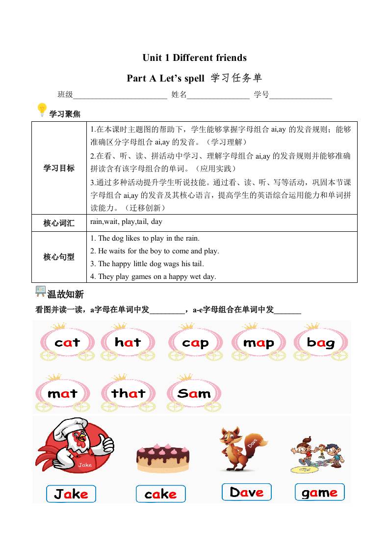 Unit 1 第3课时 Part A Let’s spell(学习任务单) (新教材).dox
