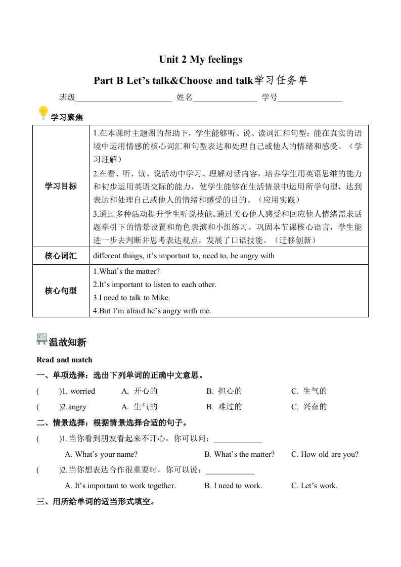 Unit 2 第4课时 Part B Let’s talk&Choose and talk (学习任务单) (新教材)