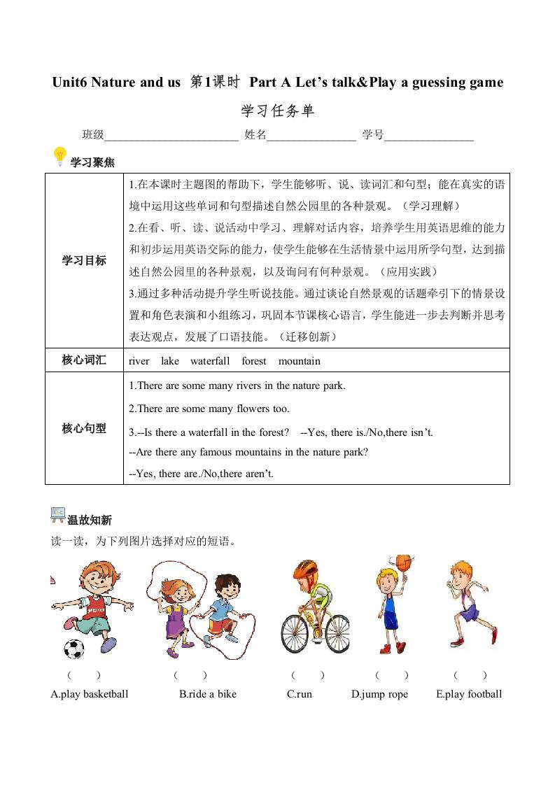 首页 > 全部 > 学习任务单 > Unit 6 第1课时 Part A Let’s talk&Play a guessing game(学习任务单)(新教材)
