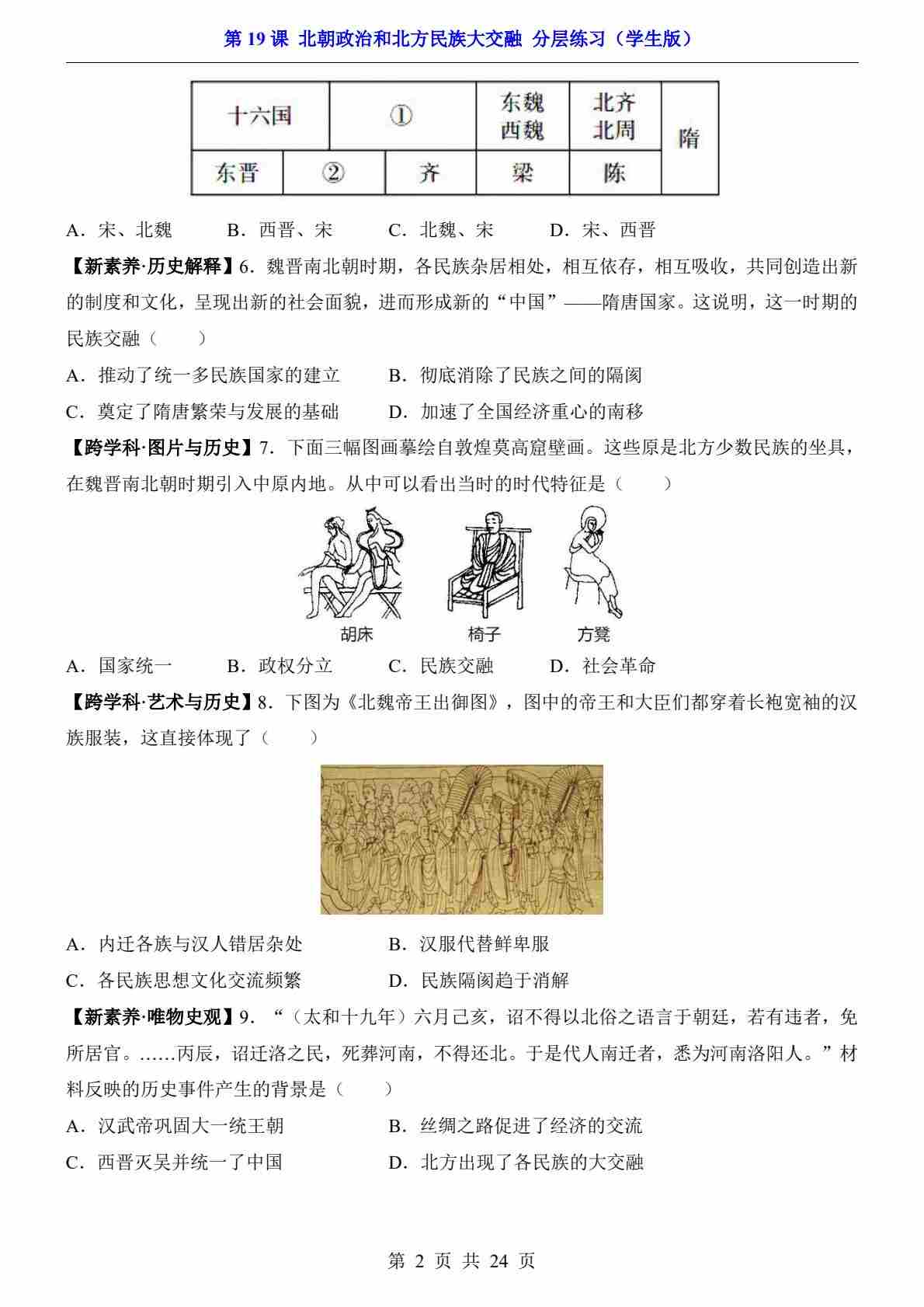 首页 > 全部 > 一课一练 > 第19课 北朝政治和北方民族大交融(分层练习)