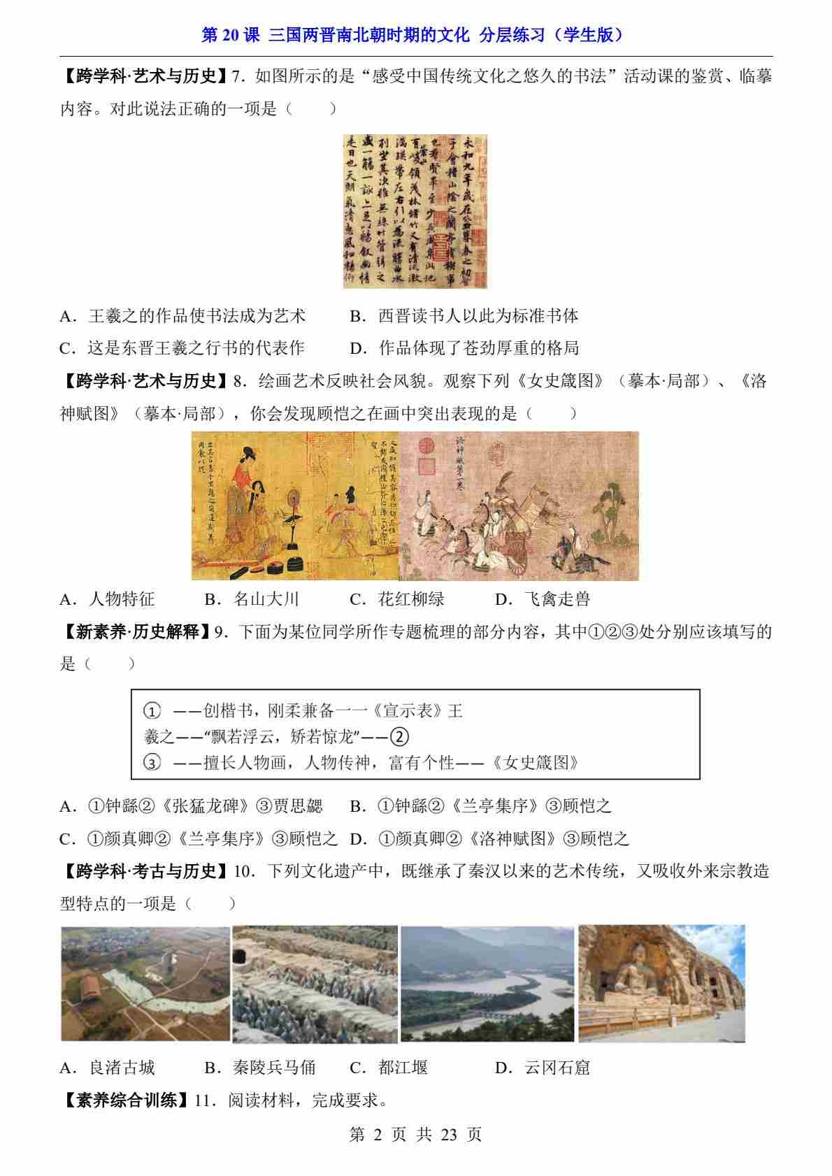 首页 > 全部 > 一课一练 > 第20课 三国两晋南北朝时期的文化(分层练习)