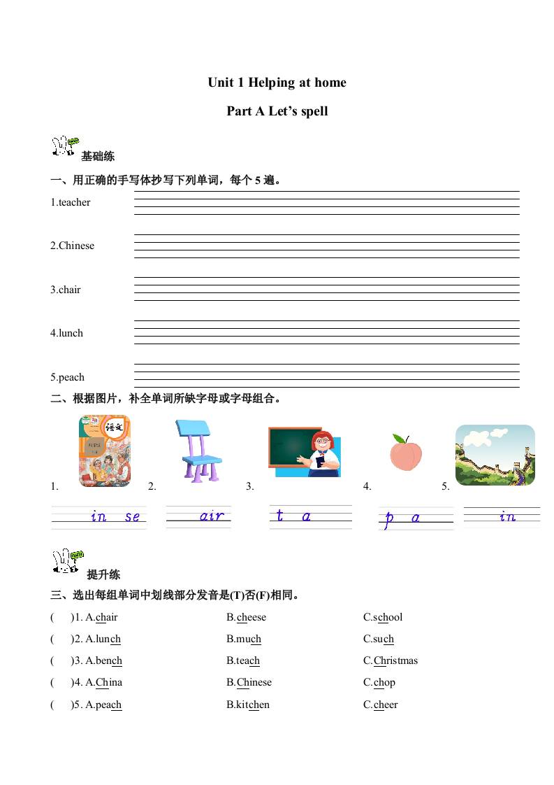 首页 > 全部 > 分层作业 > Unit 1 第3课时 Part A Let’s spell(分层作业)英语人教PEP版四年级上册(新教材)