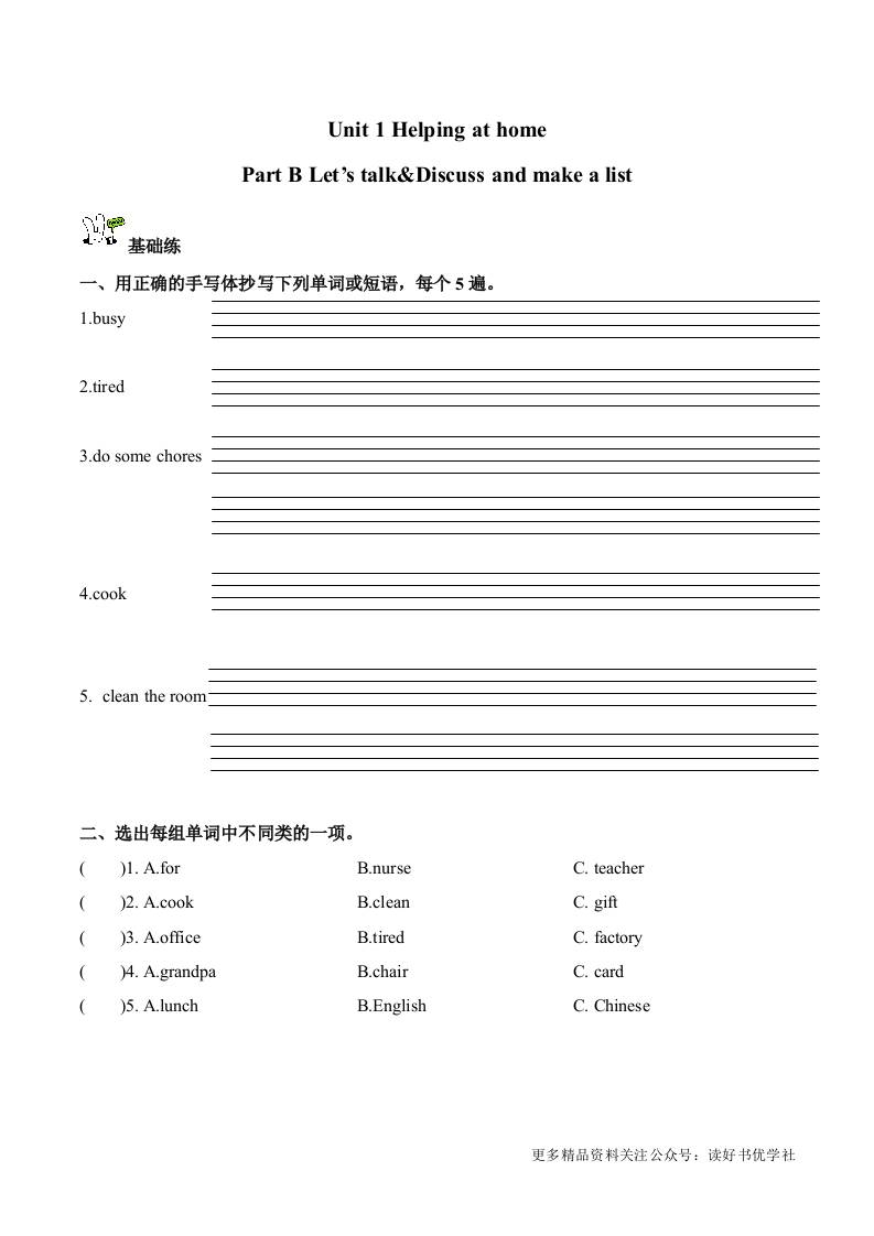 首页 > 全部 > 分层作业 > Unit 1 第4课时 Part B Let’s talk&Discuss and make a list(分层作业)英语人教PEP版四年级上册(新教材)