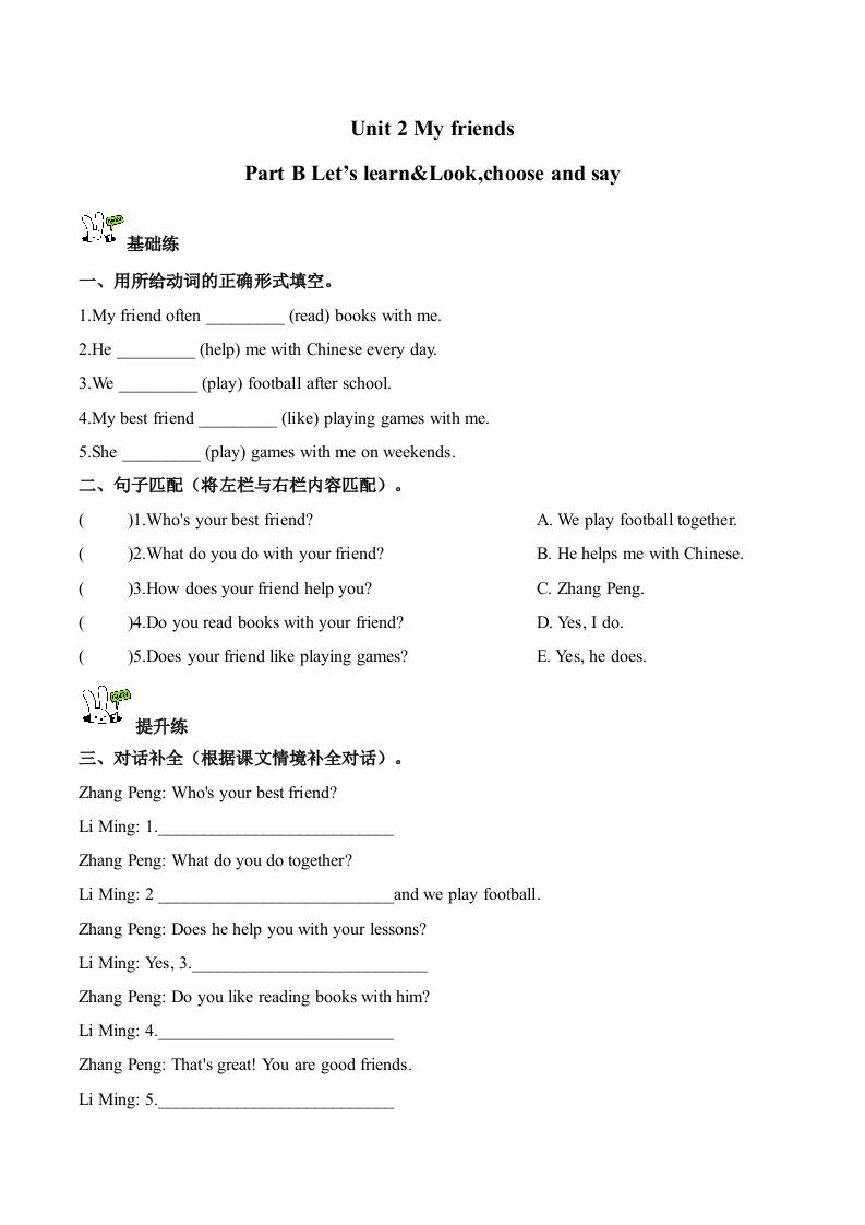 首页 > 全部 > 分层作业 > Unit 2 第5课时 Part B Let’s learn&Look,choose and say (分层作业) 英语人教PEP版四年级上册(新教材)