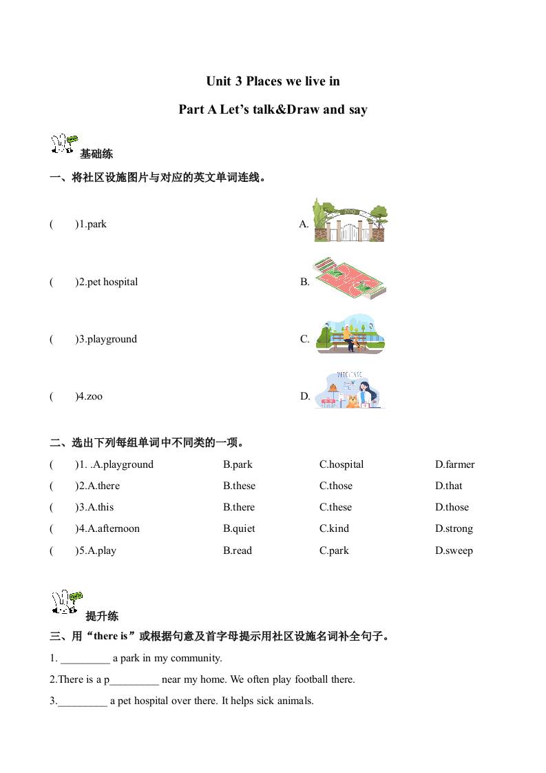 首页 > 全部 > 分层作业 > Unit 3 第1课时 Part A Let's talk&Draw and say (分层作业)英语人教PEP版四年级上册(新教材)