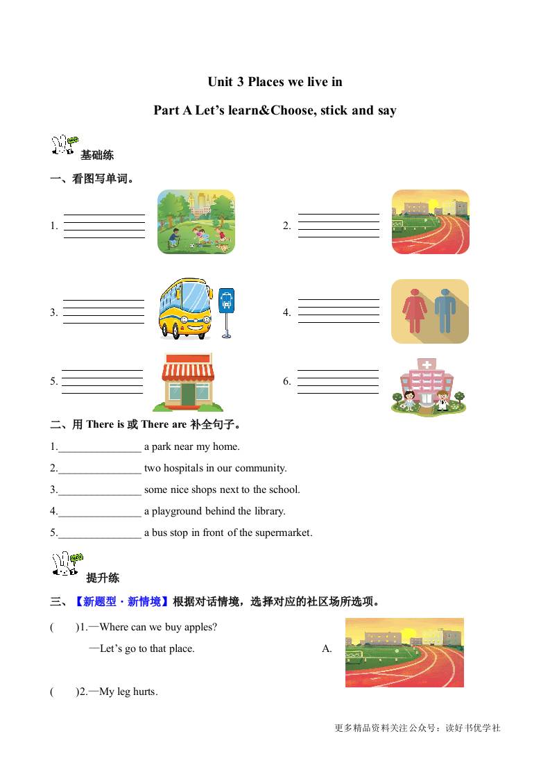Unit 3 第2课时 Part A Let’s learn&Choose,stick and say (分层作业)英语人教PEP版四年级上册(新教材)