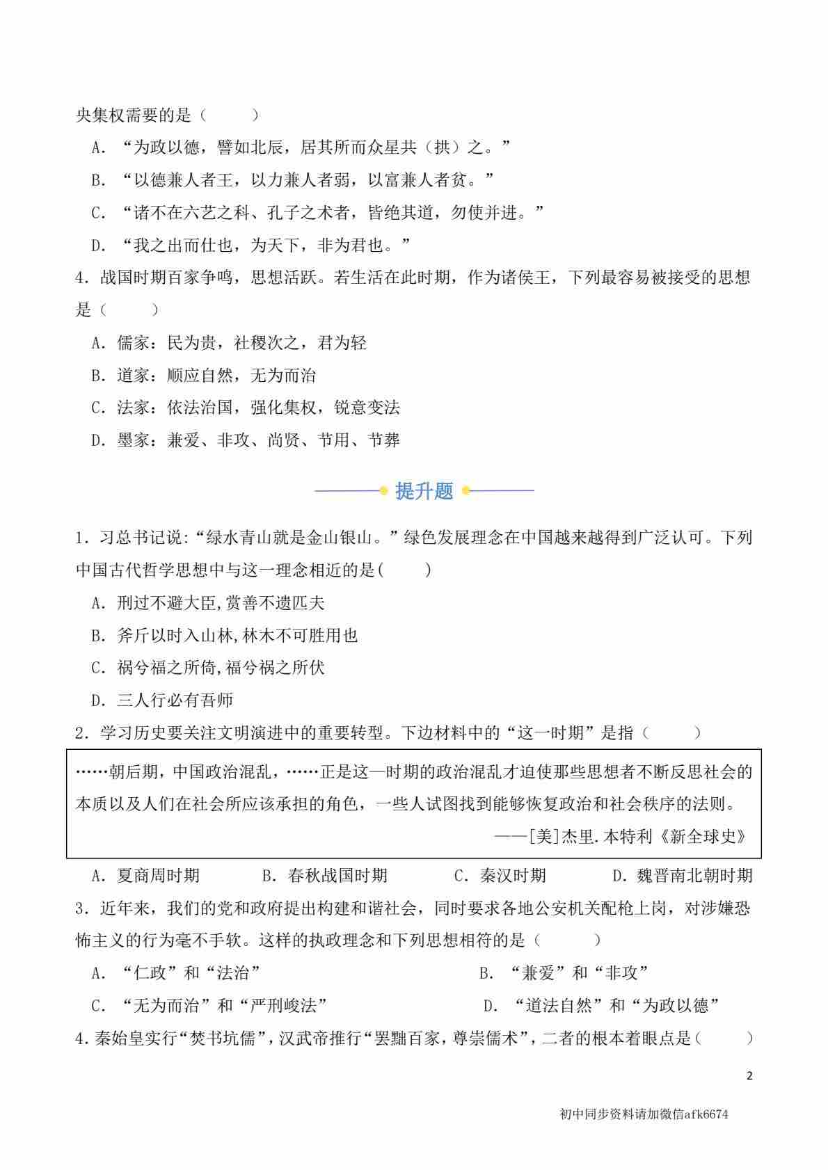 首页 > 全部 > 专项练习 > 专项3 中国古代思想的发展(原卷版)