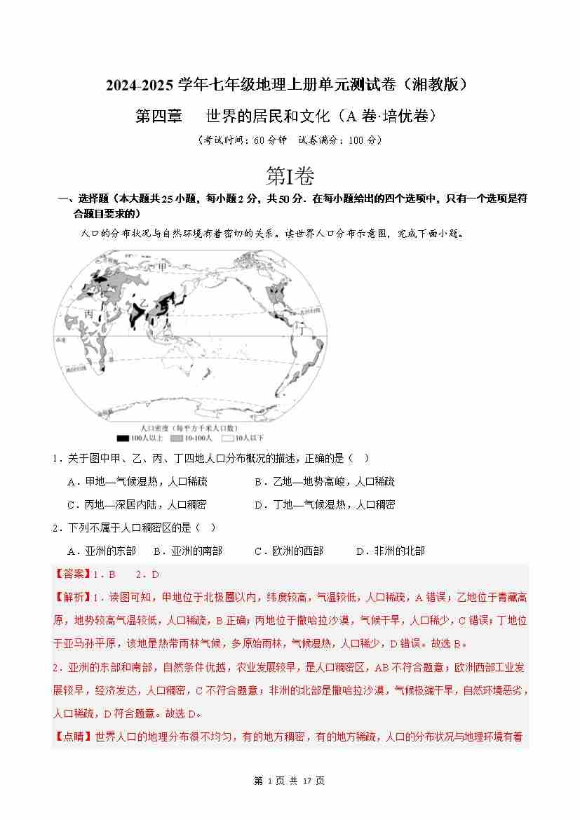 首页 > 全部 > 单元培优卷 > 第4章 世界的居民与文化【A卷·培优卷】(解析版)