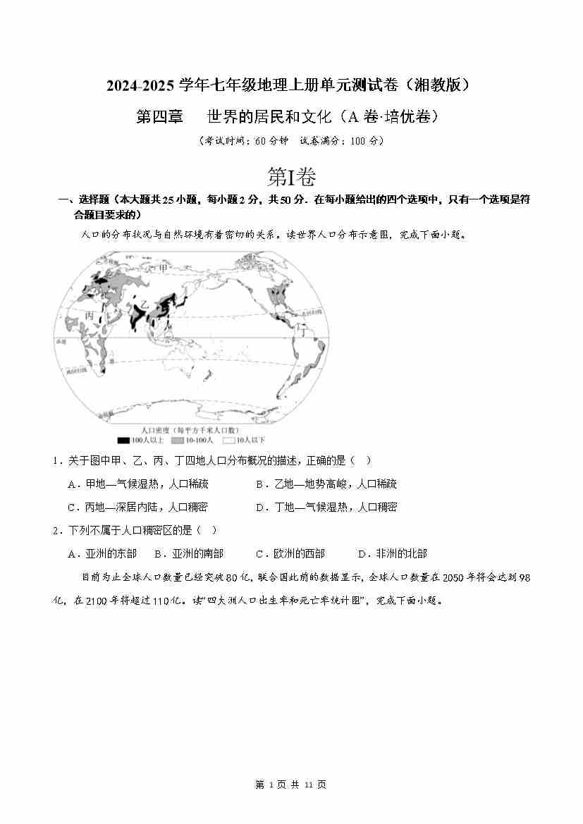 第4章 世界的居民与文化【A卷·培优卷】(原卷版)