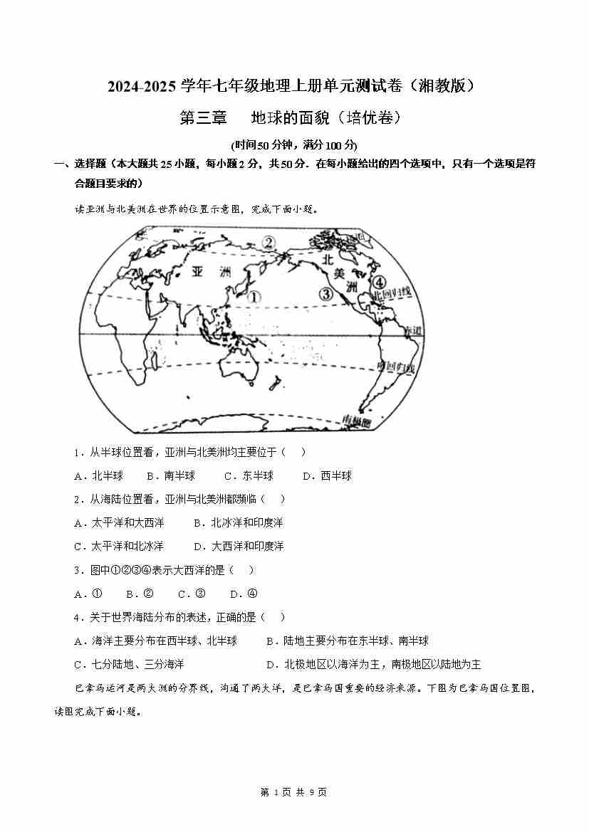 第3章 地球的面貌【A卷·培优卷】(原卷版)