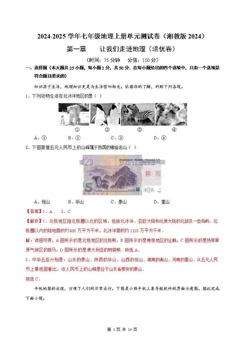 首页 > 全部 > 单元培优卷 > 第1章 让我们走进地理【A卷·培优卷】(解析版)