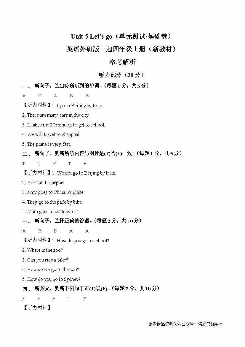 首页 > 全部 > 单元基础卷 > Unit 5 Let’s go(参考解析)