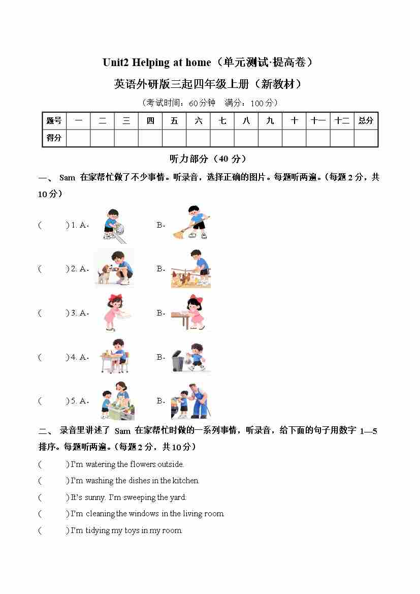 首页 > 全部 > 单元提升卷 > Unit 2 Helping at home(单元测试·提高卷)