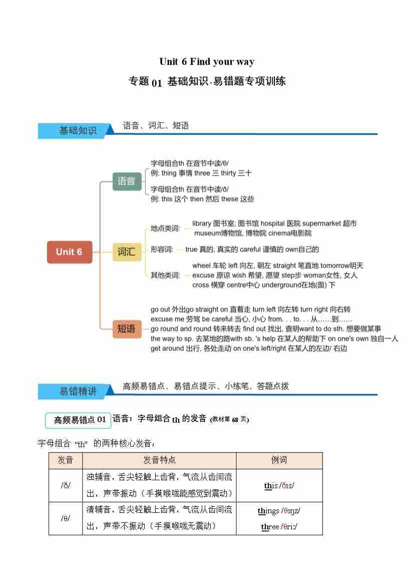 首页 > 全部 > 易错专项题 > Unit 6 Find your way(易错题专项训练·基础知识)英语外研版三起四年级上册(新教材)