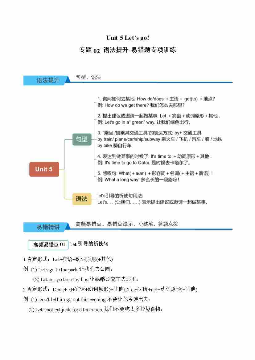 Unit 5 Let's go(易错题专项训练·语法提升)英语外研版三起四年级上册(新教材)