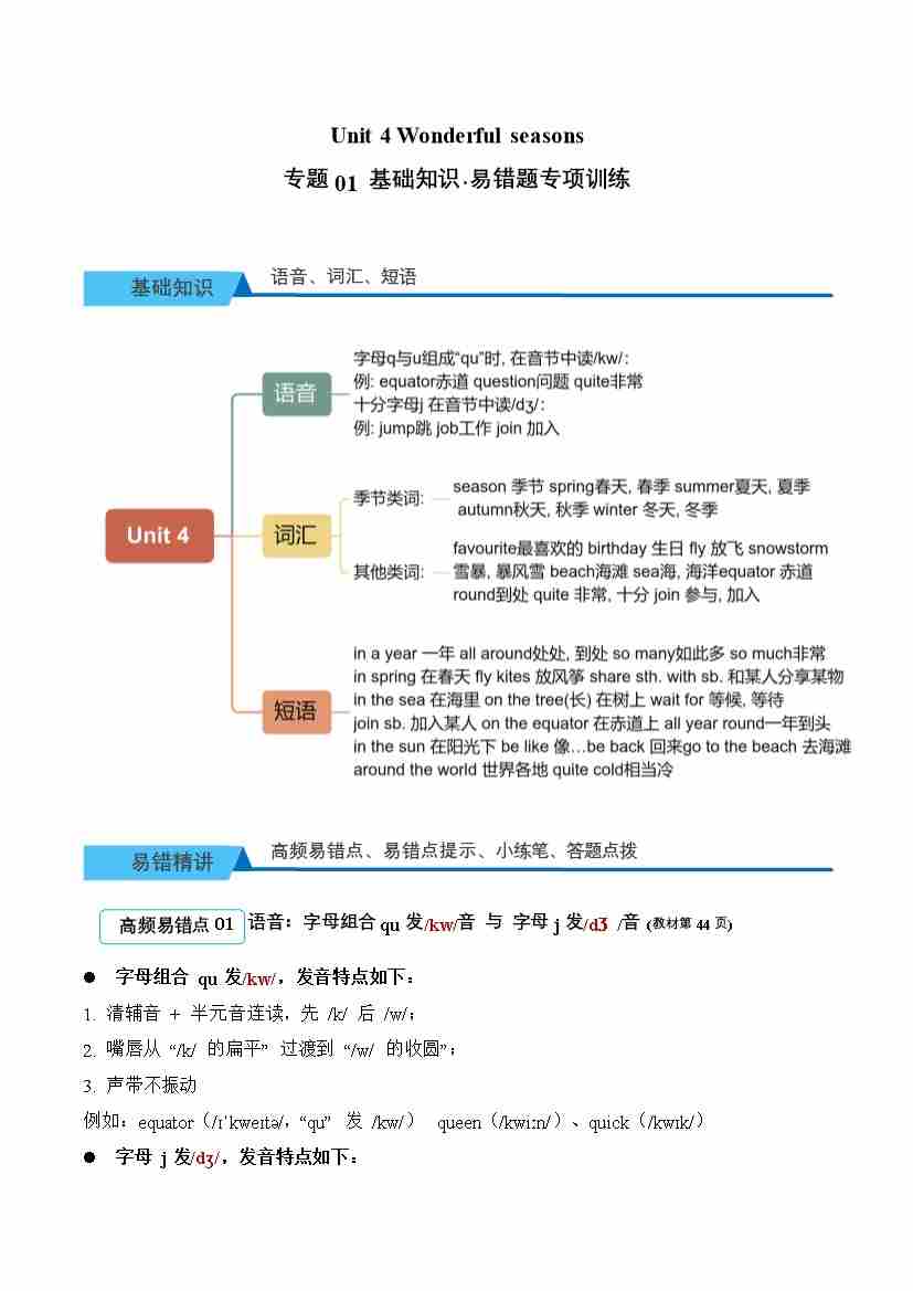 首页 > 全部 > 易错专项题 > Unit 4 Wonderful seasons(易错题专项训练·基础知识)英语外研版三起四年级上册(新教材)