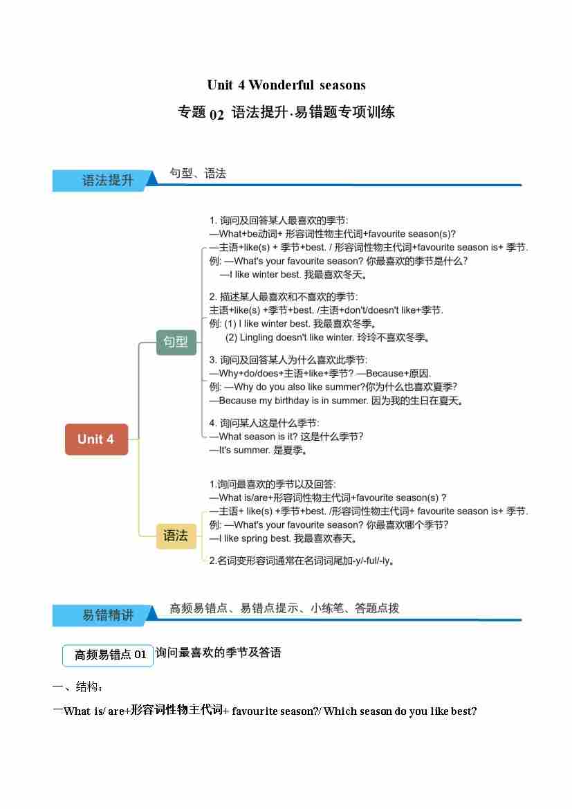 首页 > 全部 > 易错专项题 > Unit 4 Wonderful seasons(易错题专项训练·语法提升)英语外研版三起四年级上册(新教材)