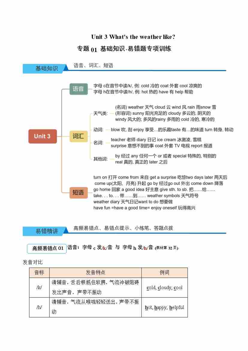 首页 > 全部 > 易错专项题 > Unit 3 What's the weather like(易错题专项训练·基础知识)英语外研版三起四年级上册(新教材)