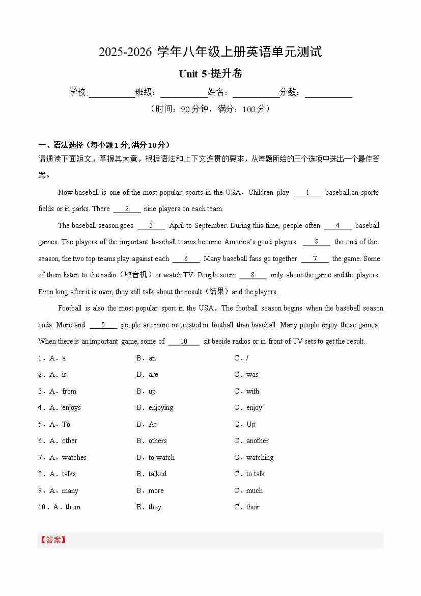 首页 > 全部 > 单元提升卷 > Unit 5 Teamwork(单元测试·提升卷)(解析版)