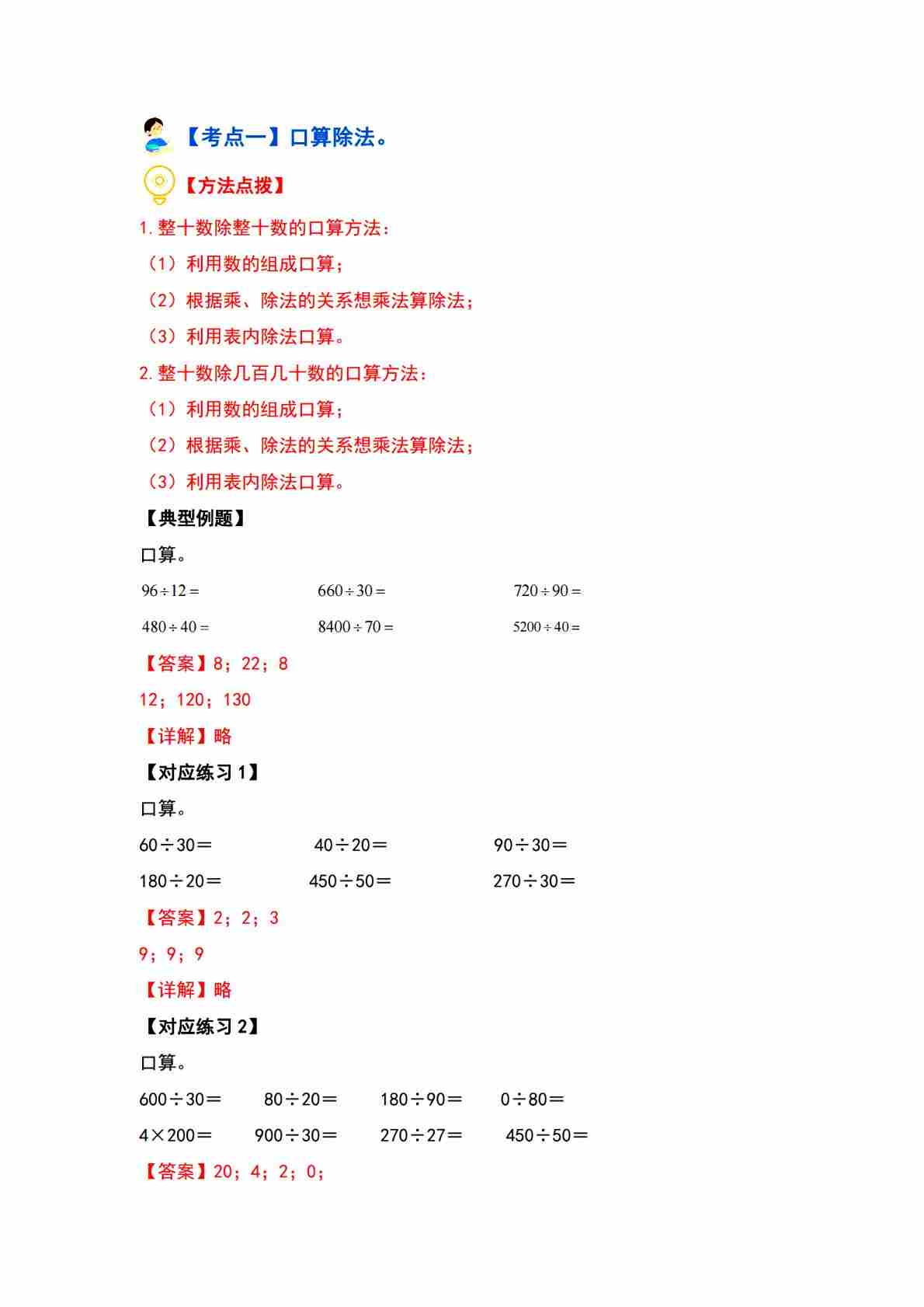 首页 > 全部 > 专项练习 > 第六单元 除数是两位数的除法·计算篇【十三大考点】答案解析