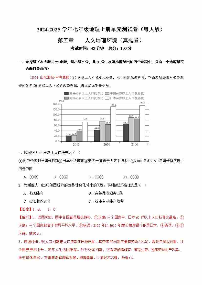 首页 > 全部 > 单元真题卷 > 第五章 人文地理环境【B卷·真题卷】-2024-2025学年七年级地理上册单元速记·巧练(粤人版2024)(解析版)