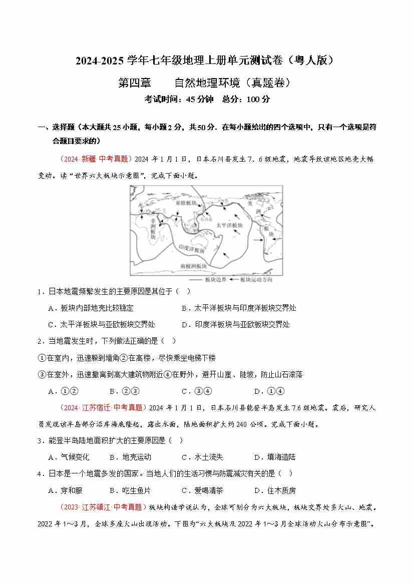 首页 > 全部 > 单元真题卷 > 第四章 自然地理环境【B卷·真题卷】-2024-2025学年七年级地理上册单元速记·巧练(粤人版)(原卷版)