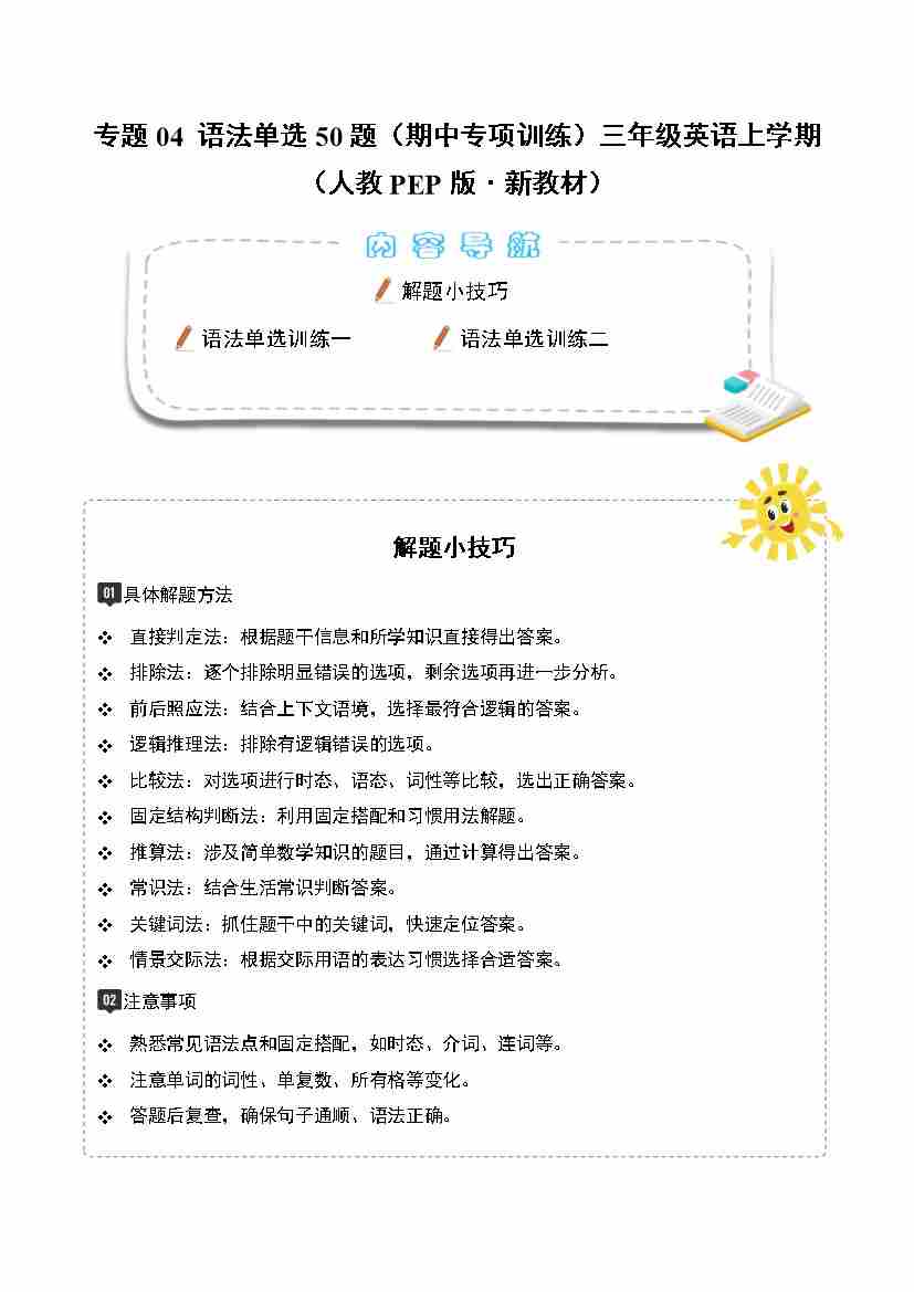 专题04 语法单选(期中专项训练)三年级英语上学期(人教PEP版·新教材)