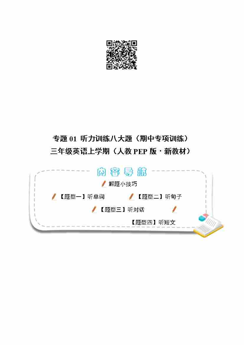 首页 > 全部 > 期中专项 > 专题01 听力训练(期中专项训练)三年级英语上学期(人教PEP版·新教材)