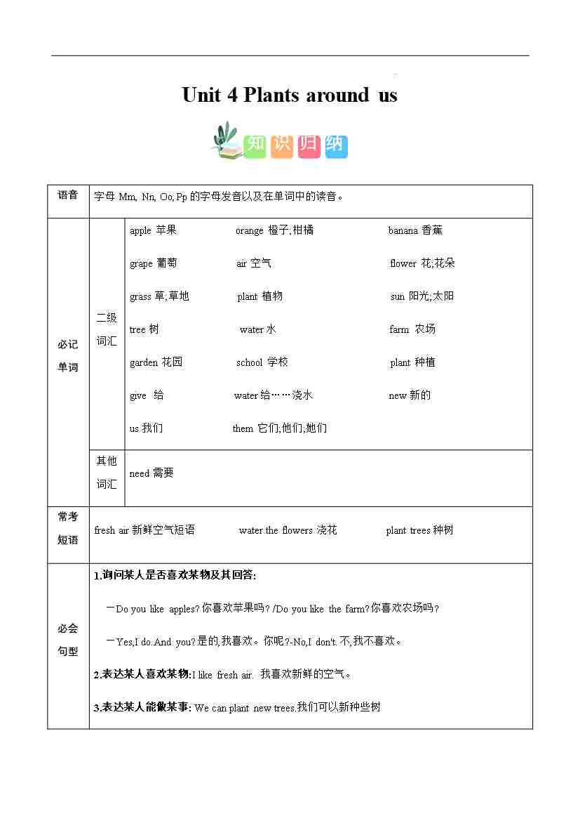 首页 > 全部 > 知识清单 > Unit 4(知识清单) -2024-2025学年英语三年级上册单元速记·巧练系列(人教PEP版·2024秋)