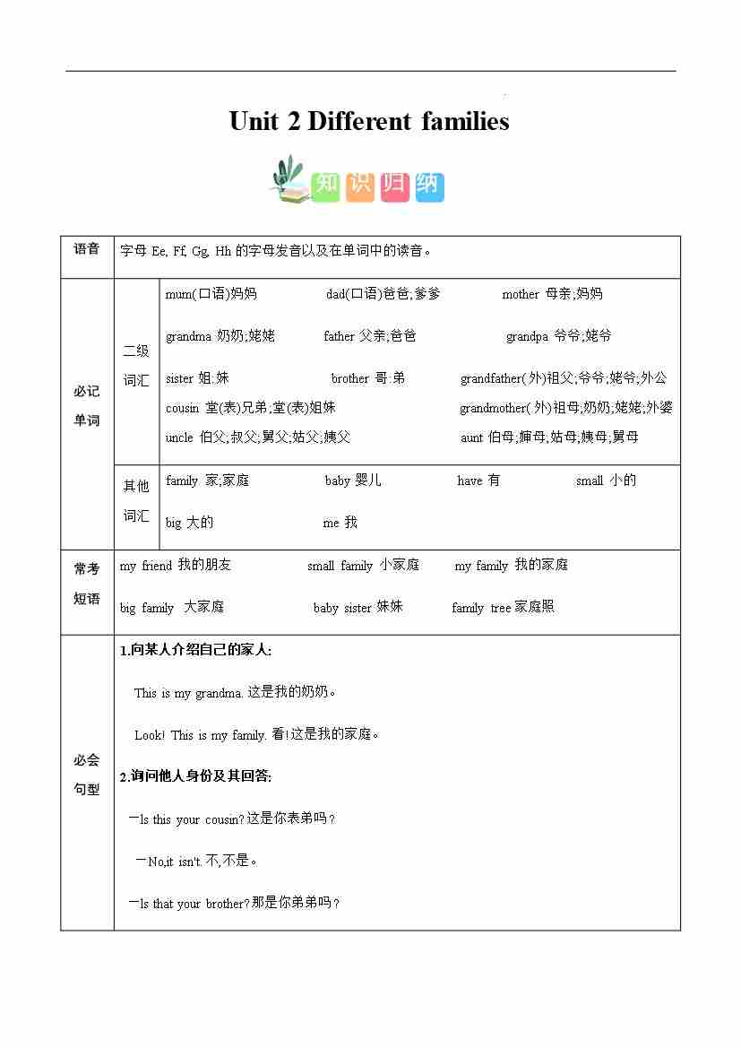 首页 > 全部 > 知识清单 > Unit 2(知识清单) -2024-2025学年英语三年级上册单元速记·巧练系列(人教PEP版·2024秋)