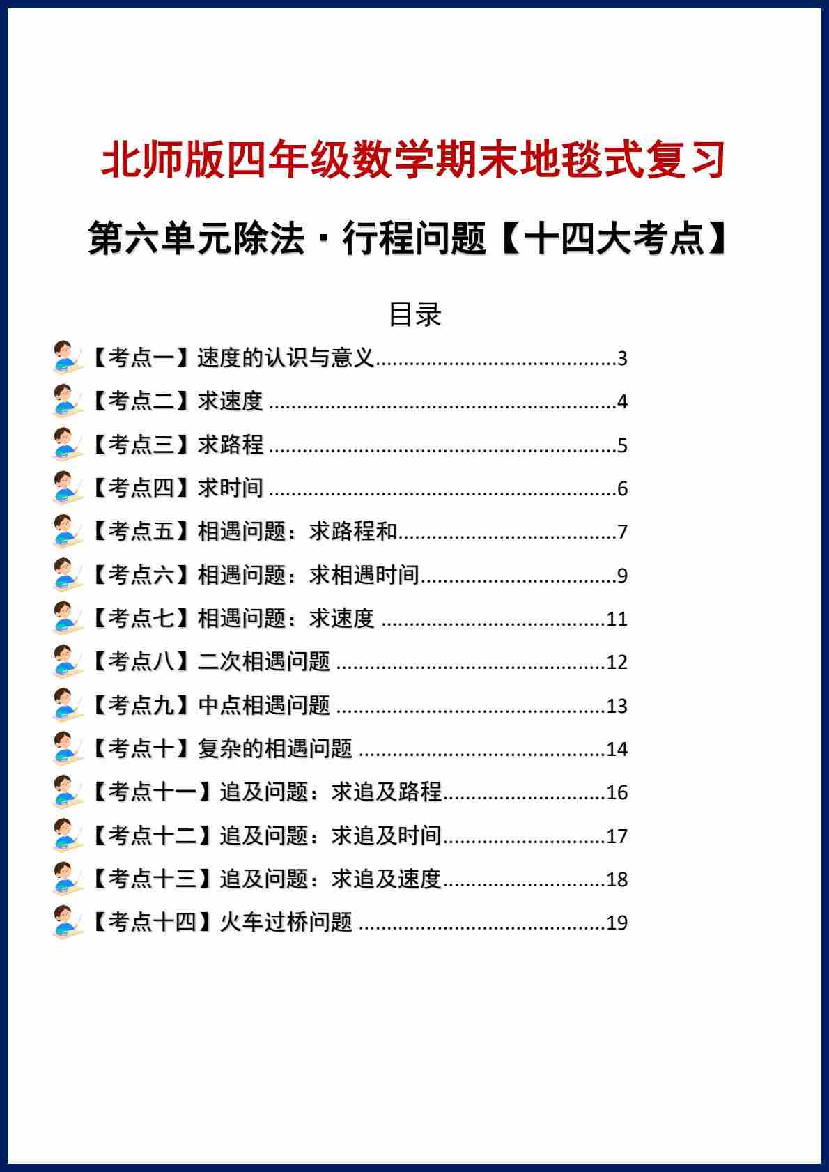首页 > 全部 > 专项练习 > 第六单元除法·特别篇·行程问题【十四大考点】