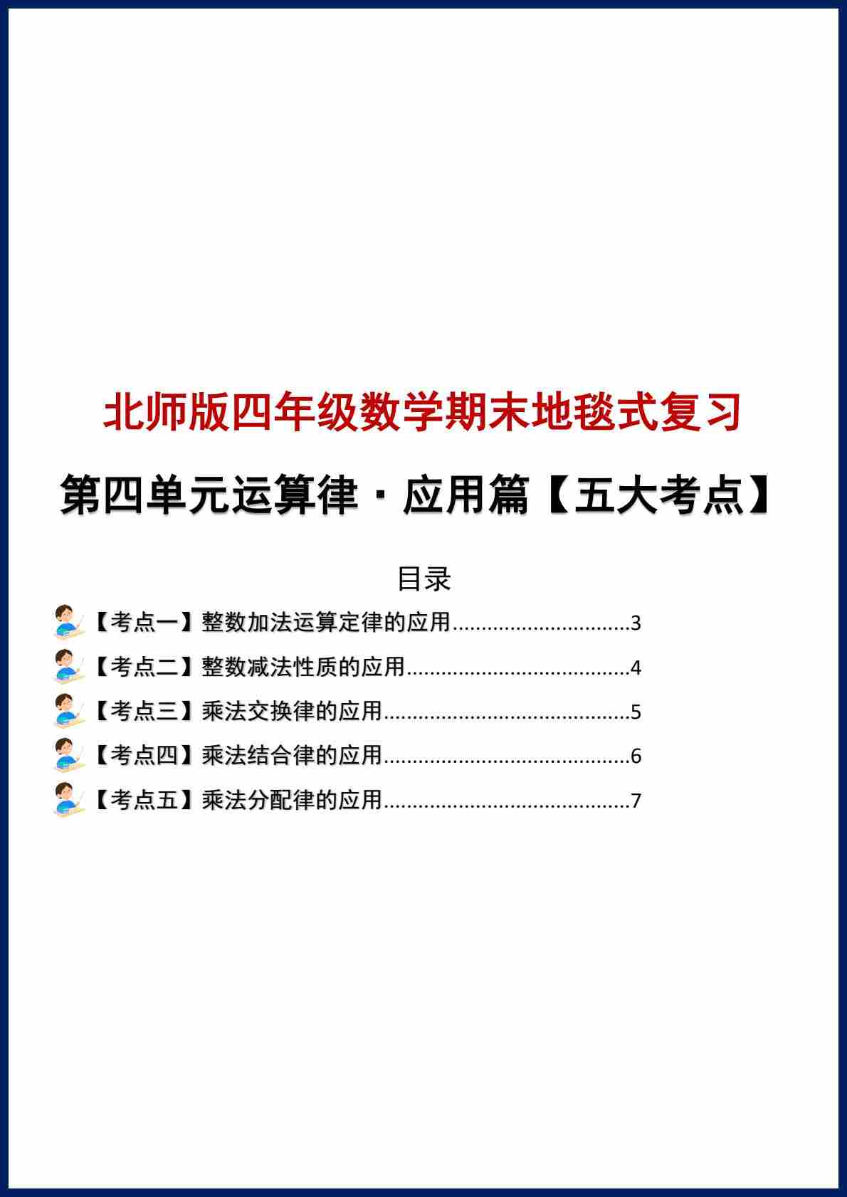 首页 > 全部 > 专项练习 > 第四单元运算律·应用篇【五大考点】